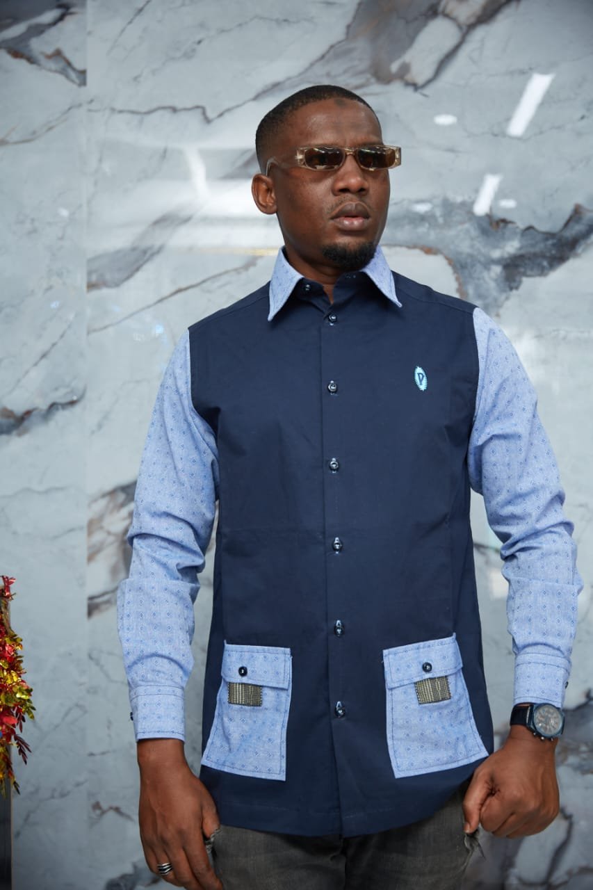 Chemise sophistiquée associant le bleu marine et le bleu clair pour un rendu sobre et très élégant. Les poches frontales structurées et les finitions soignées renforcent son caractère haut de gamme. Adaptée aux rendez-vous professionnels, cérémonies ou looks urbains élégants.