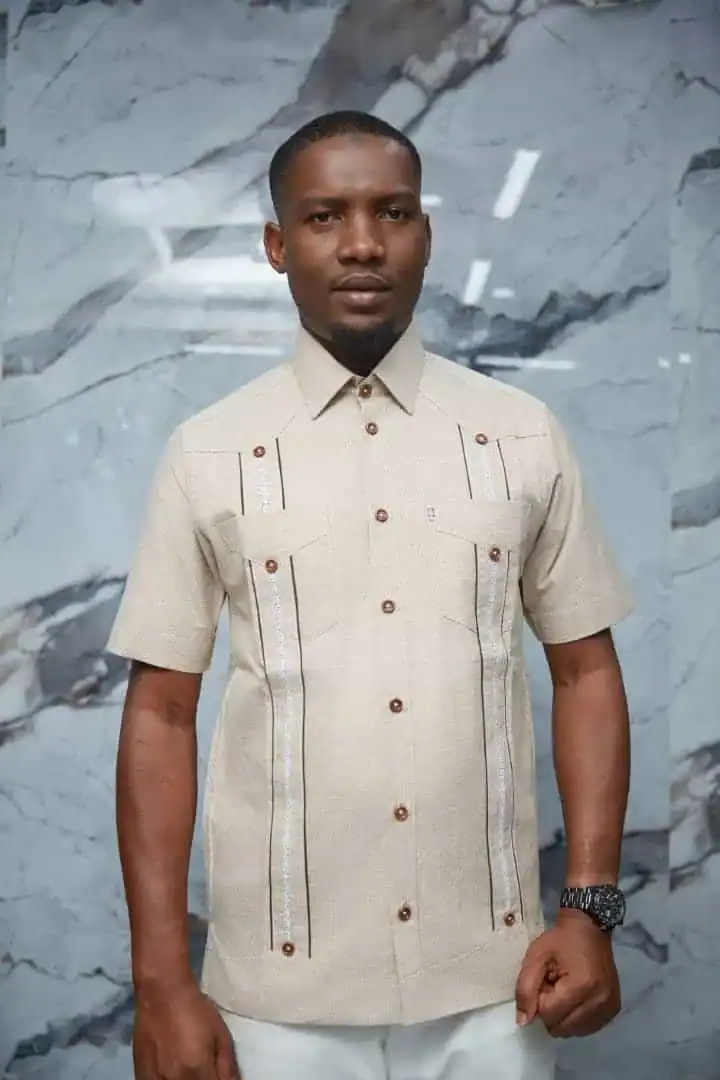 Cette chemise beige à manches courtes incarne l’élégance sobre et le raffinement. Ses lignes verticales décoratives et ses boutons soigneusement assortis apportent une touche sophistiquée et moderne. Sa coupe structurée met en valeur la silhouette, tandis que son tissu de qualité assure un confort optimal. Polyvalente et intemporelle, cette chemise est idéale pour les cérémonies, réunions professionnelles ou sorties élégantes, tout en restant agréable à porter au quotidien.