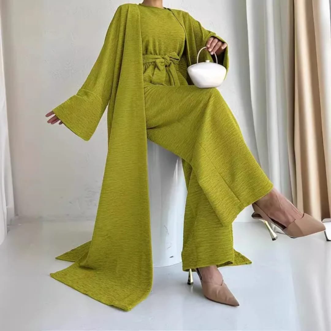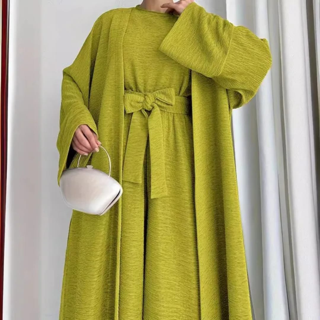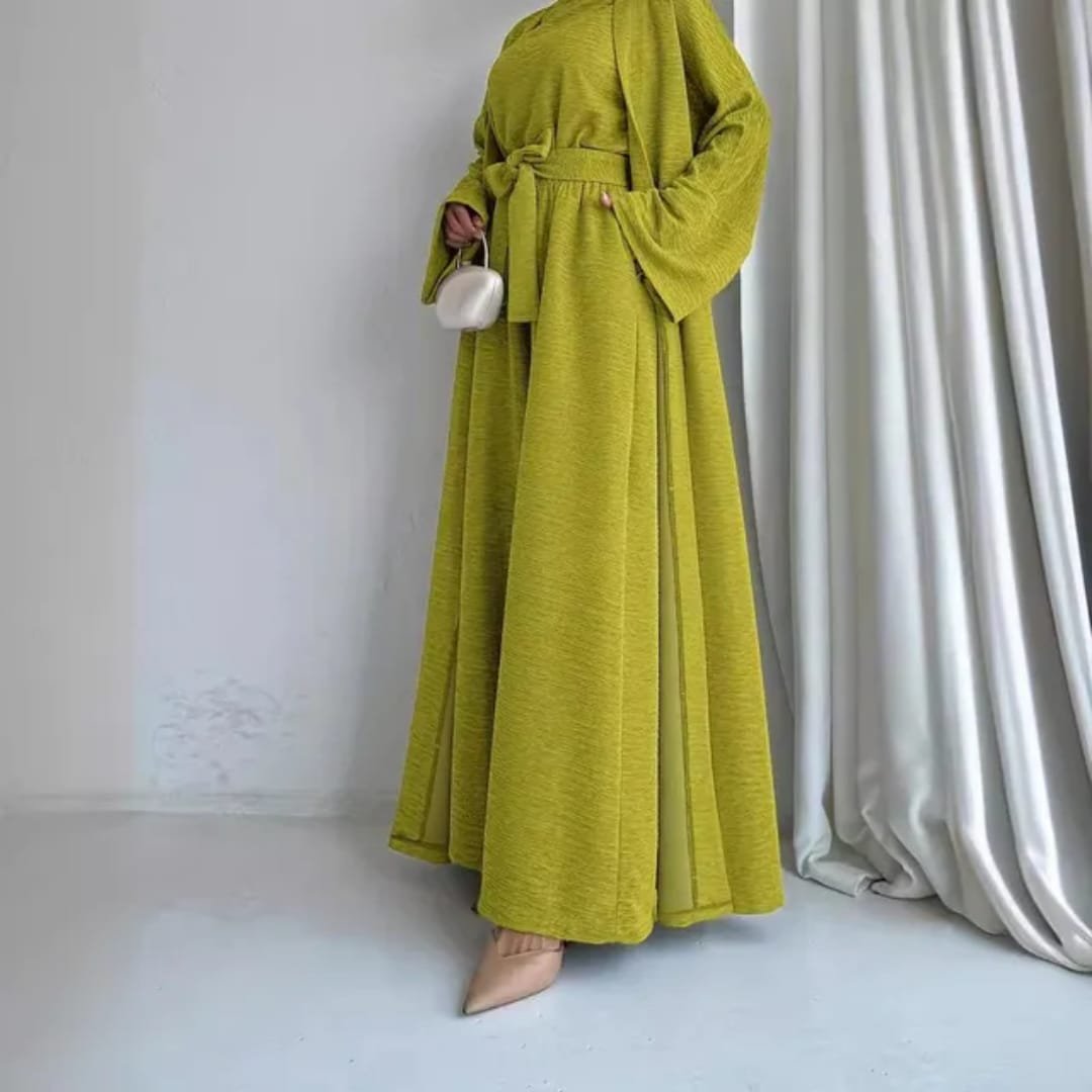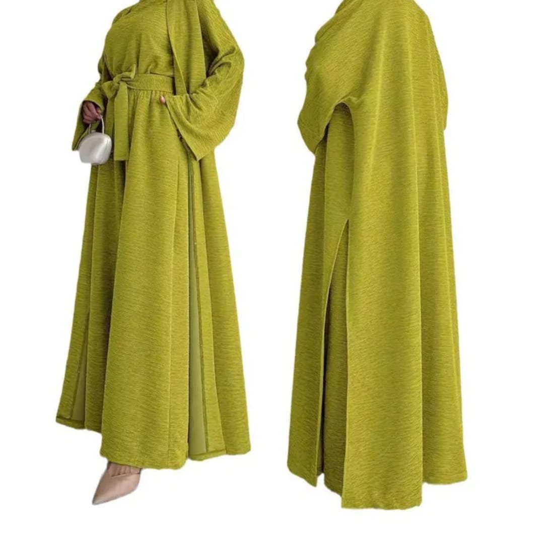 22000 CFARobe abaya . Robe débardeur bas avec un gilet par dessus et une ceinture .