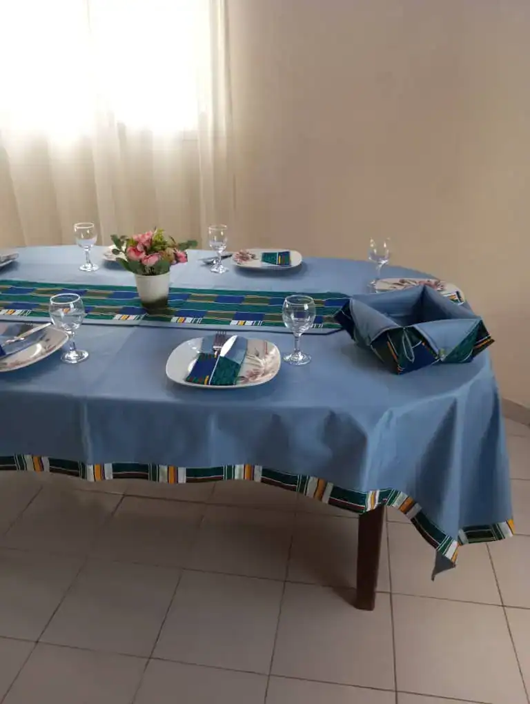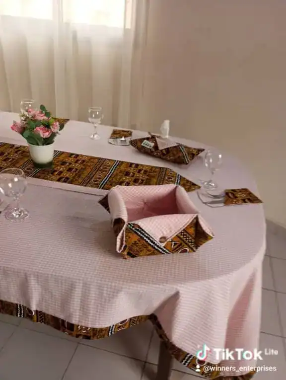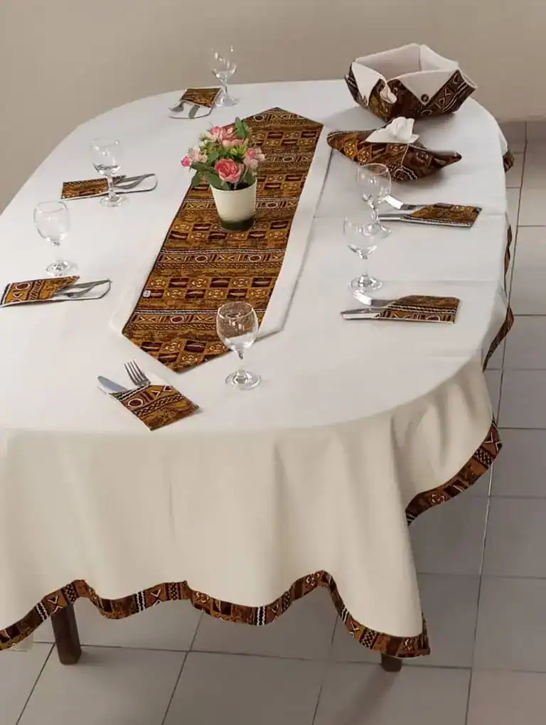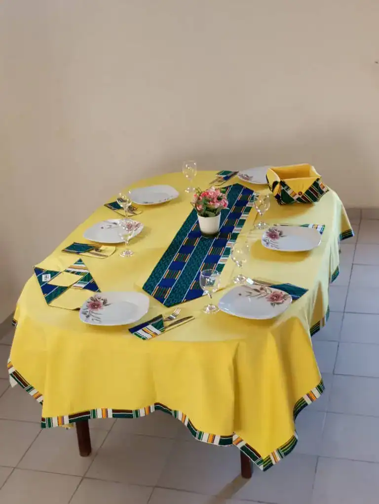 Apportez une touche d’élégance et de tradition africaine à votre table avec cet ensemble raffiné en tissu imprimé.
