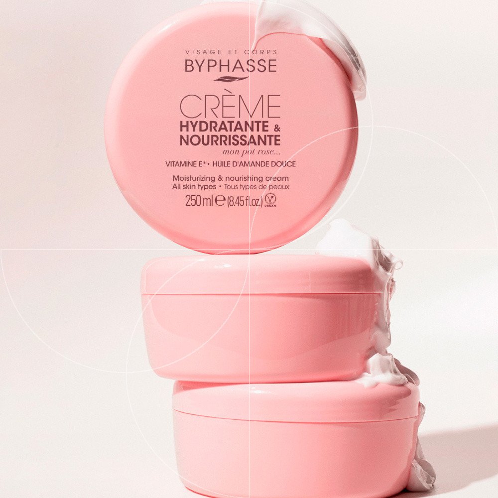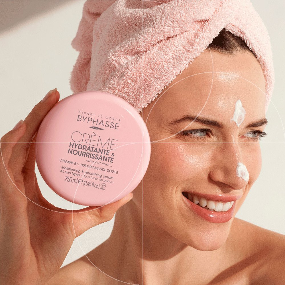 La crème hydratante et nourrissante visage & corps enveloppe la peau d’un soin généreux adapté à toutes les zones et à tous les types de peaux.