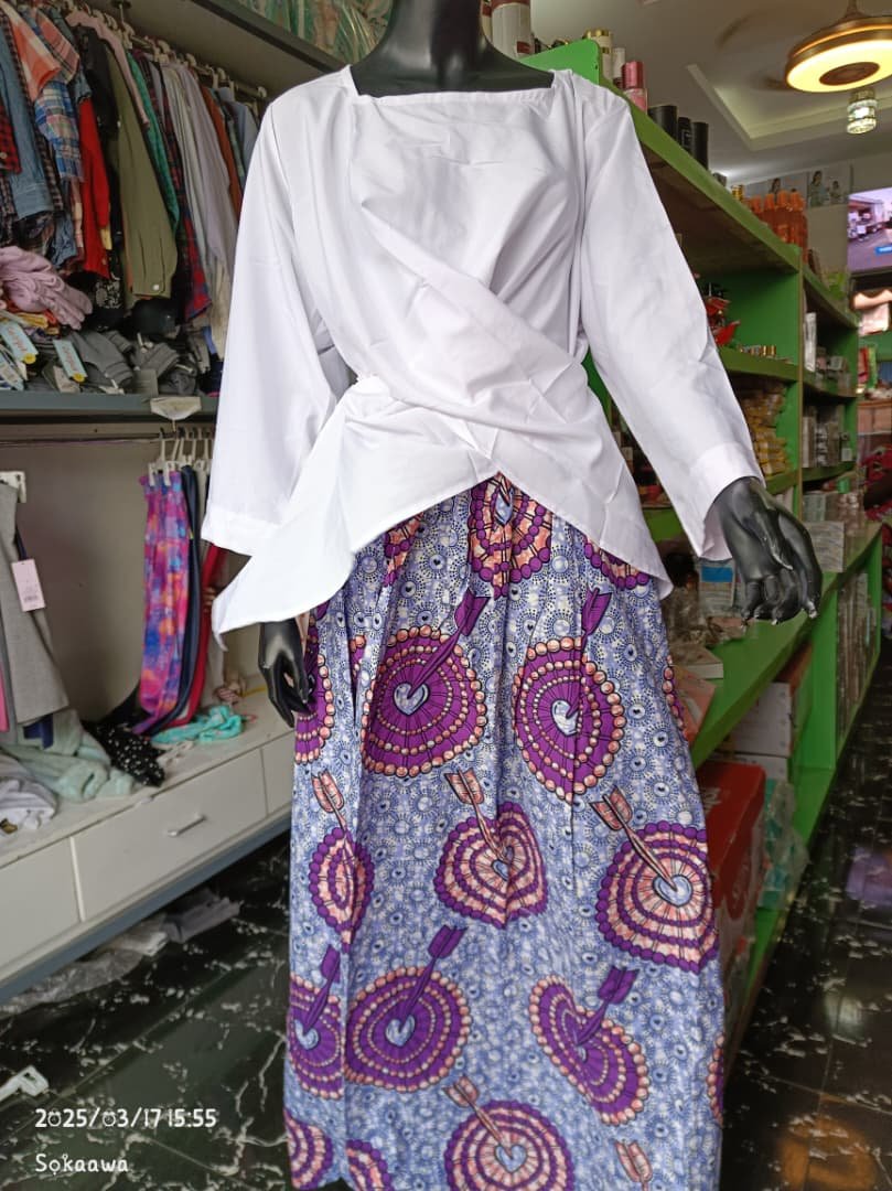 20000 CFARobe longue en lin , ceinture en pagne attachable a votre convenance . idéale pour toutes sorte d’occasion en journée comme en soirée