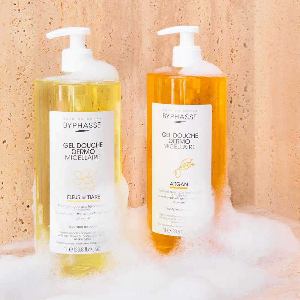 Un parfum d’évasion enveloppe la douche : le gel douche Dermo micellaire Argan marie la douceur de la technologie micellaire à l’exotisme de l’huile d’argan. Une mousse onctueuse nettoie la peau tout en la respectant.