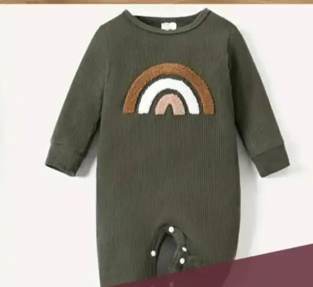 idéale pour la peau délicate des tout-petits. Sa couleur vert kaki apporte une touche naturelle et élégante, sublimée par un joli motif arc-en-ciel brodé sur le devant.