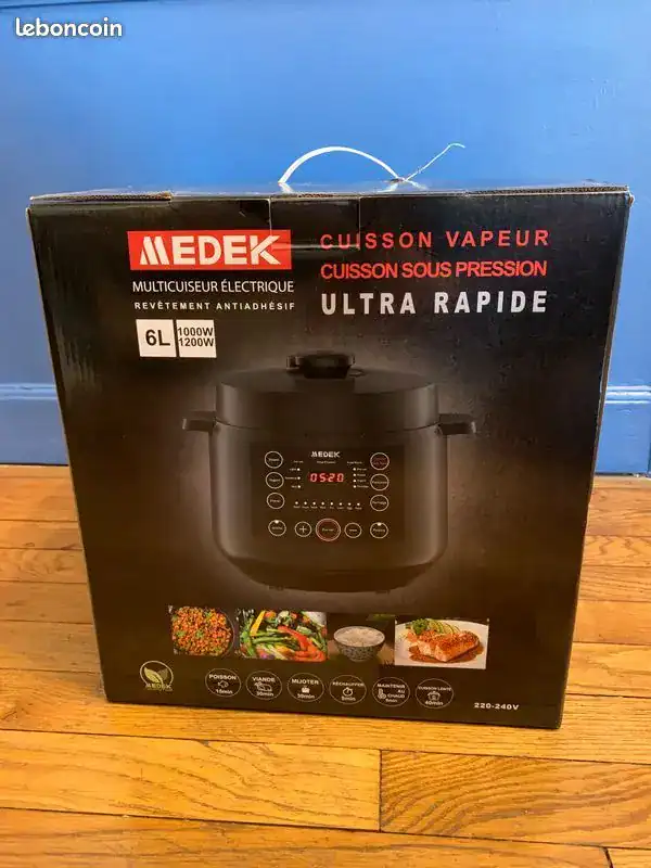 Le multicuiseur électrique MEDEK 6L est un appareil polyvalent qui combine cuisson vapeur, cuisson sous pression, mijotage, riz, viande, poisson et plus encore. Grâce à sa puissance de 1000–1200W et son système de chauffe ultra rapide, il réduit le temps de cuisson tout en préservant la saveur des aliments. Son bol à revêtement antiadhésif garantit une utilisation propre et facile à nettoyer. Avec son écran numérique intuitif et ses multiples programmes automatiques, c’est l’allié idéal pour gagner du temps en cuisine tout en réussissant une grande variété de recettes.