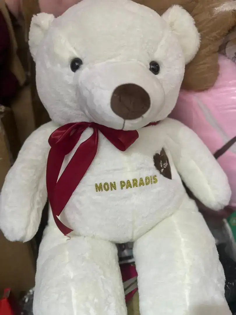 Cet ours en peluche blanc est le cadeau idéal pour transmettre affection et douceur. Fabriqué avec une matière ultra-moelleuse, il est agréable au toucher et réconfortant à serrer dans les bras. Son joli nœud et l’inscription « Mon Paradis » ajoutent une touche romantique et sentimentale. Parfait pour offrir lors d’un anniversaire, d’une naissance, de la Saint-Valentin ou simplement pour surprendre quelqu’un de spécial.