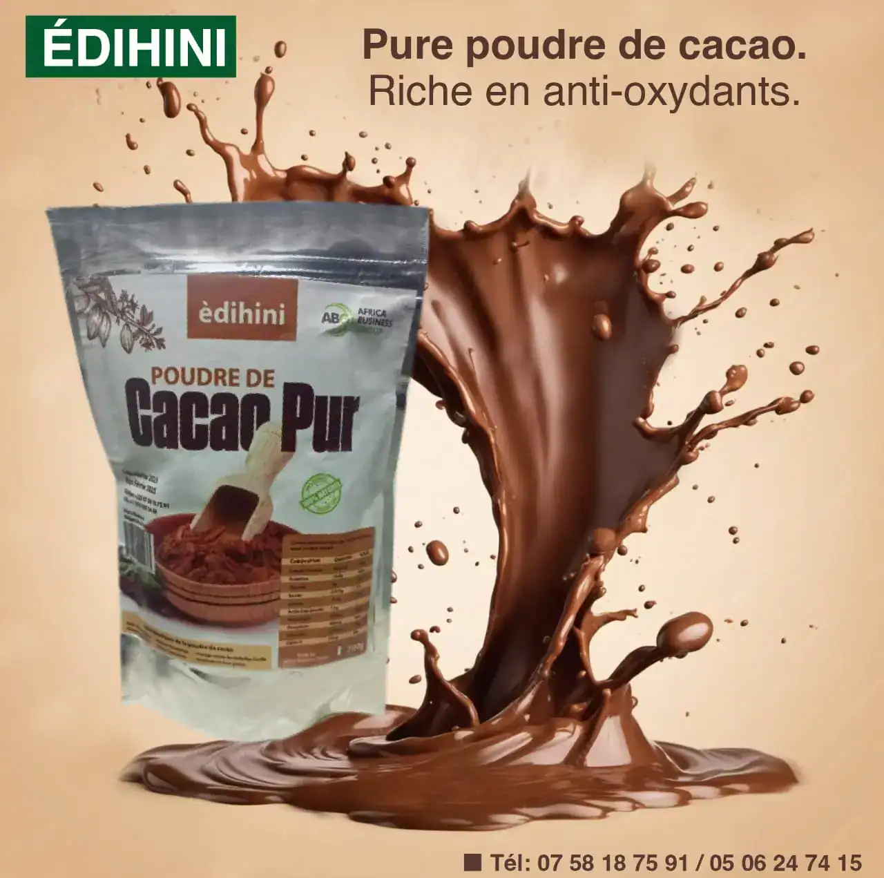 Découvrez notre poudre de cacao pur, issue de fèves soigneusement sélectionnées pour garantir une qualité supérieure et un goût intense. Naturelle et sans additifs, elle conserve toutes les propriétés nutritives du cacao : riche en antioxydants, en magnésium et en flavonoïdes, elle contribue au bien-être général et à l’énergie quotidienne.