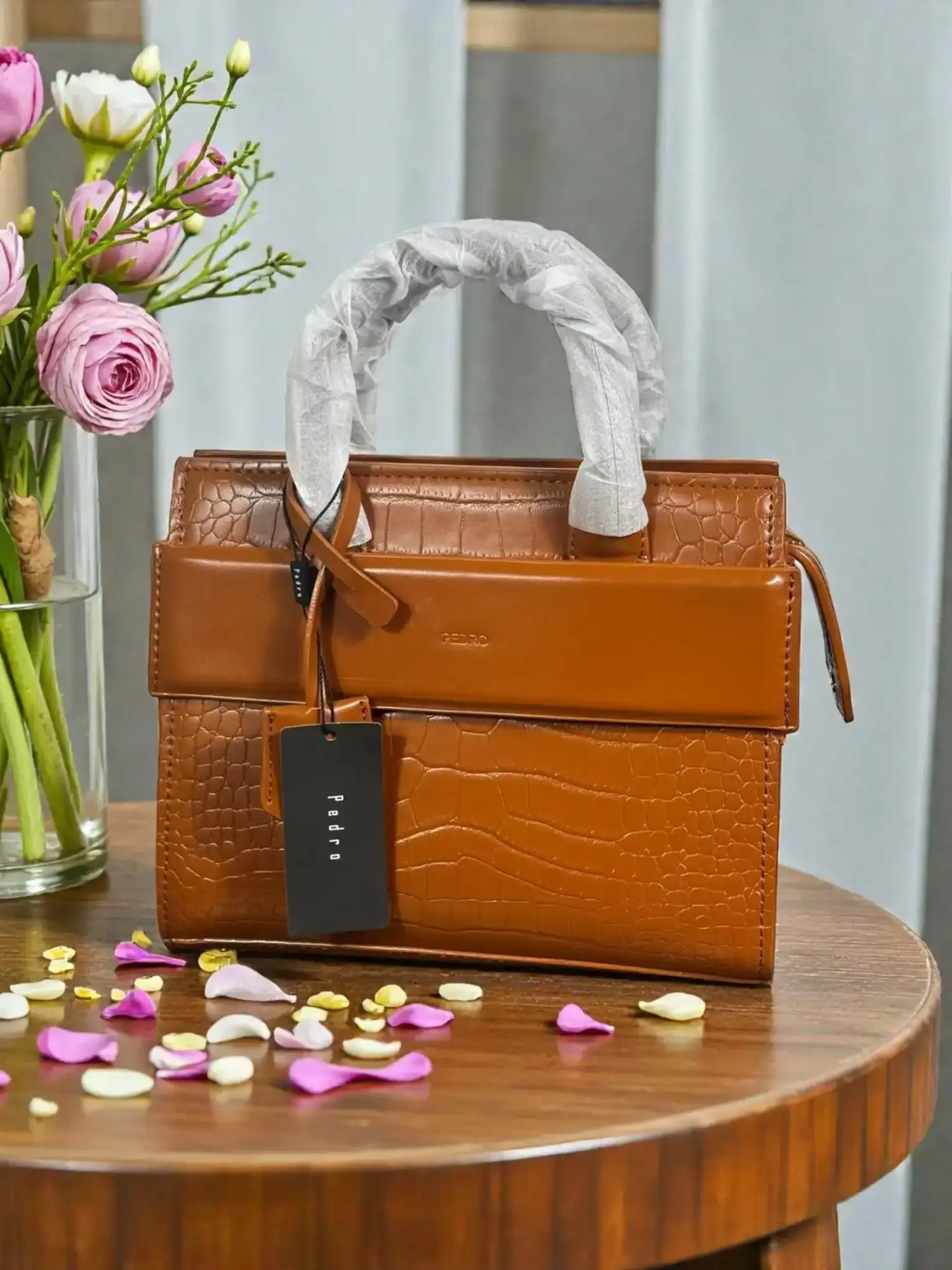 Sa texture élégante et son coloris chaleureux en font une pièce forte, idéale pour rehausser n’importe quelle tenue. Doté de deux anses robustes et d’un design structuré, il combine parfaitement style et fonctionnalité.