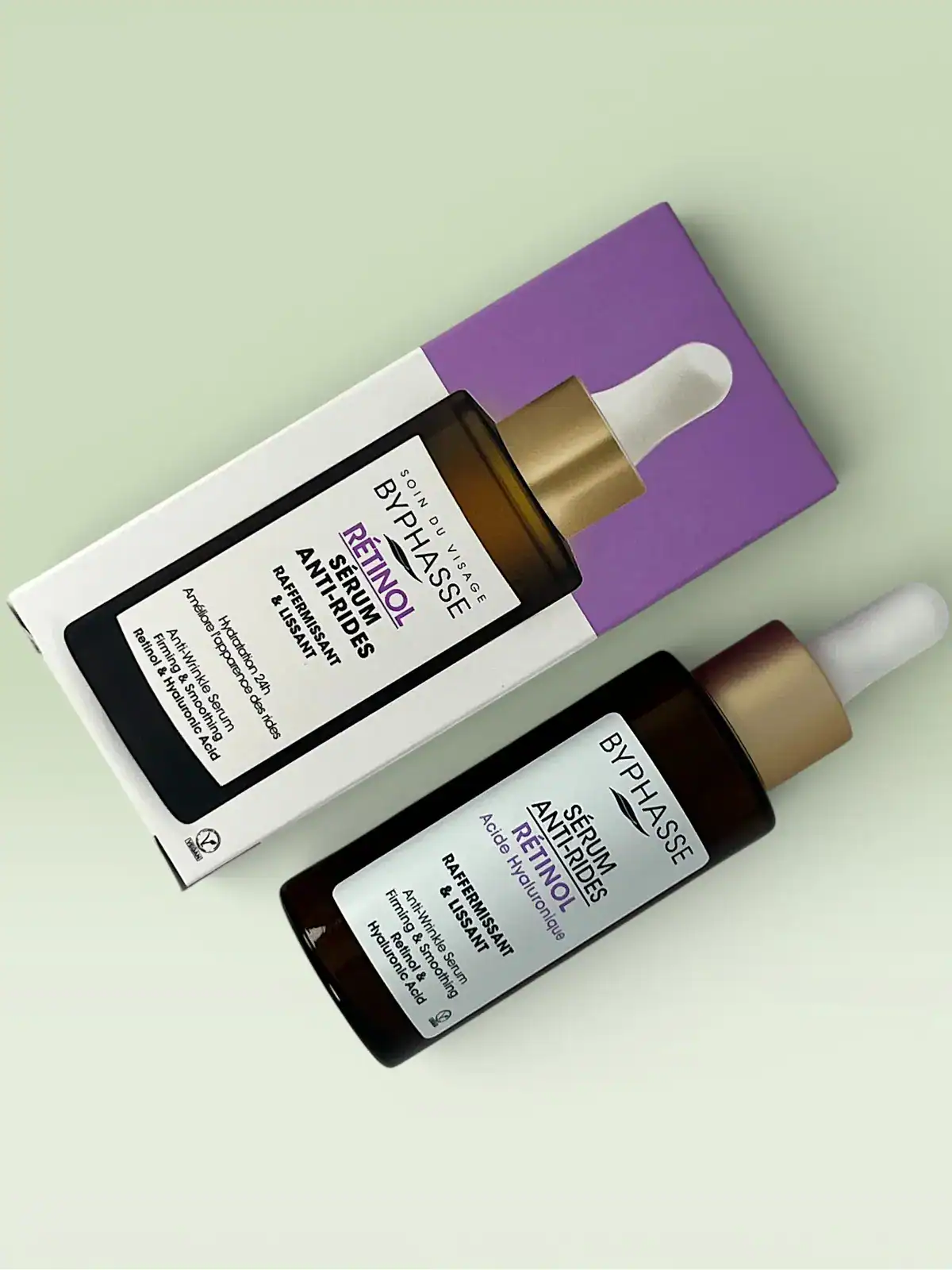 Le sérum anti-rides Byphasse améliore l’apparence des rides profondes et atténue les signes de l’âge tout en hydratant la peau pendant 24 heures. Associés dans une nouvelle molécule, le rétinol et l’acide hyaluronique améliorent la densité cutanée, restaurent l’élasticité et contribuent à réduire l’apparence des rides.